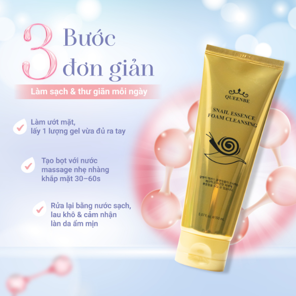 Với công thức dịu nhẹ, sữa rửa măt QueenBe tích hợp các thành phần dưỡng da từ thiên nhiên như dịch nhầy ốc sên giúp phục hồi da, glycin giúp duy trì độ ẩm tự nhiên, và chiết xuất nấm men, tầm gửi, rễ nấm có khả năng làm dịu và tái tạo làn da hiệu quả.